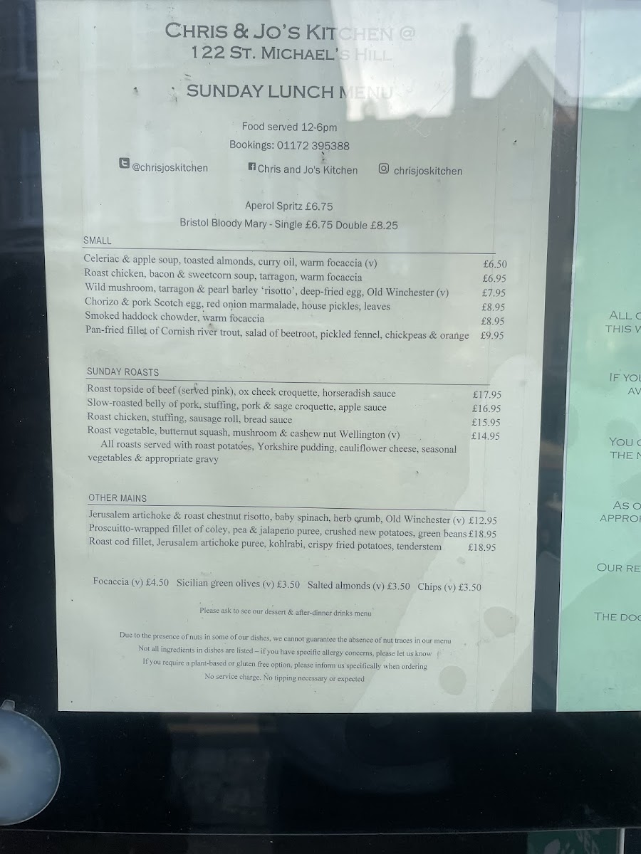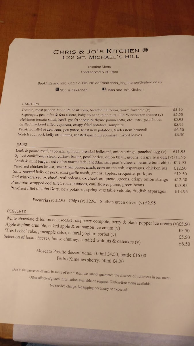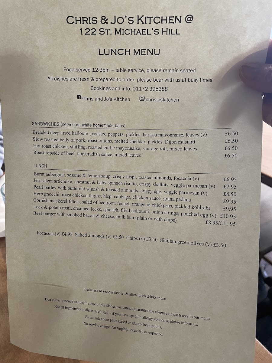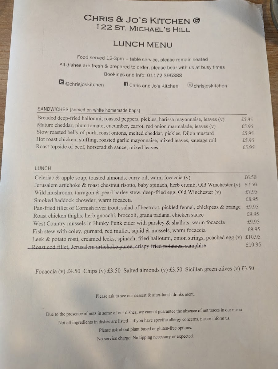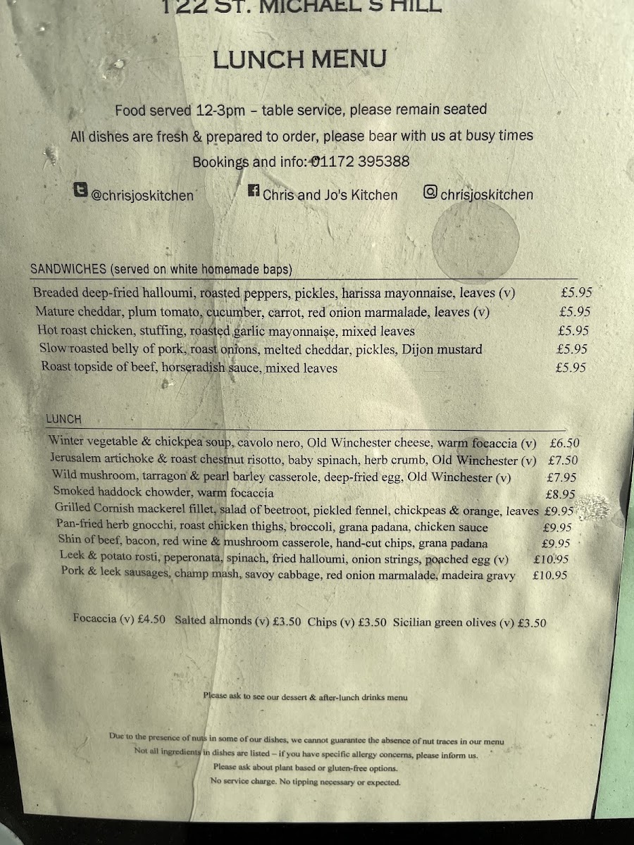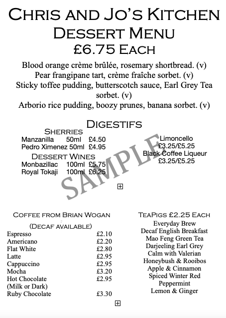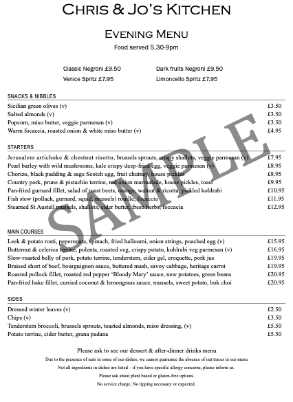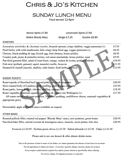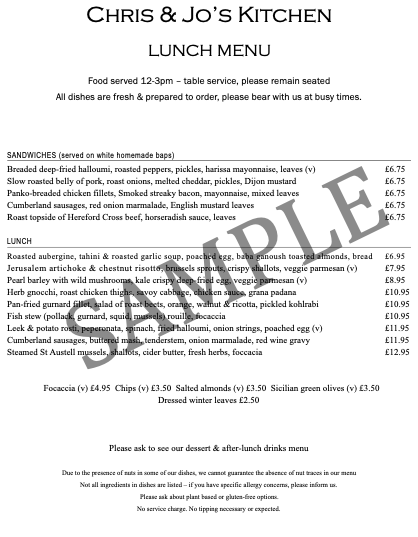 Chris and Jo's Kitchen Menu